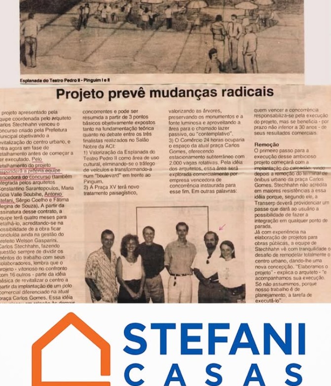 No TBT de hoje, em parceria da @stefani_casas com o @signaturejornal vamos relembrar a incrível história do arquiteto Antonio Stefani! 🏛️ Ele foi o responsável por projetar um calçadão que se destacou pela sua inovação, com estacionamento subterrâneo e uma impressionante forma de pirâmide de vidro. 🌟